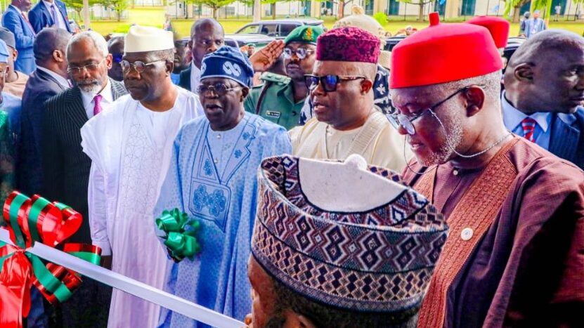 President Tinubu, SP Akpabio, ES Nwawuba at the Launch of National Assembly Library